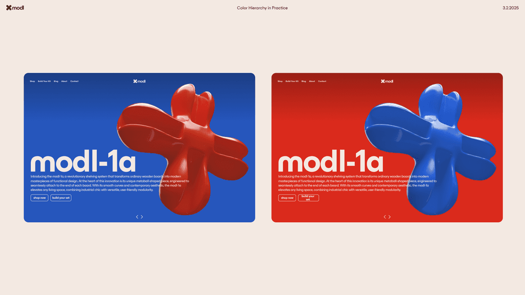 The Modl website was designed to showcase the product’s playful modularity through bold composition and color. The layout uses clean grids, oversized typography, and rich primary hues to echo the tactile simplicity of the furniture itself.